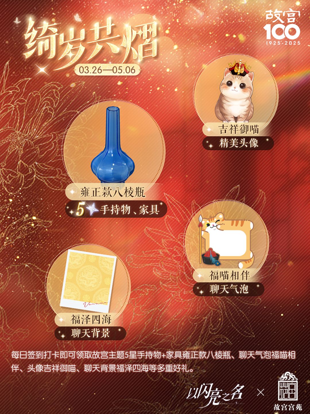参与以闪亮之名 x 故宫宫苑联动活动,领取限定联动奖励!