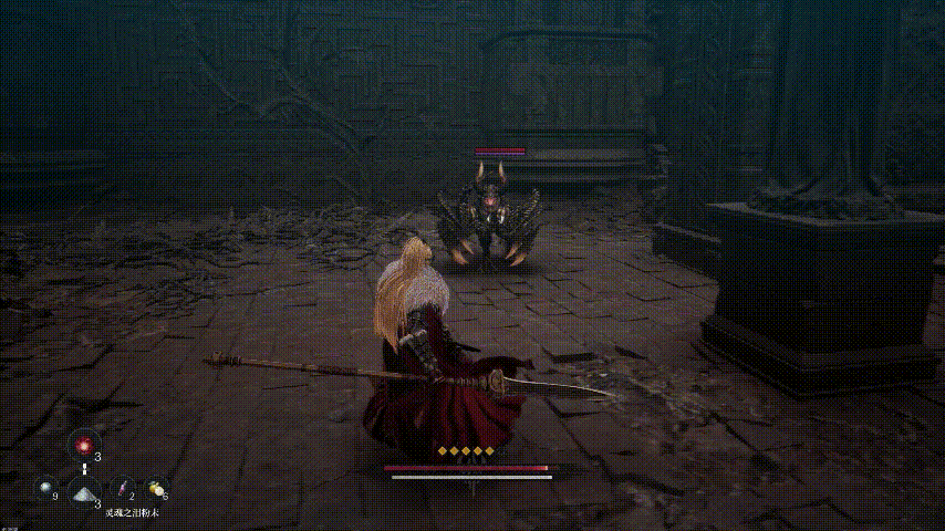 即时闪避成功后会在原地留下一个虚影,之后立刻按下轻、重攻击时根据解锁技能的不同,会派生出很多有用的招式;游戏的普通防御比很多同类产品性能要强一些,只要防住就不会扣血,只会削减精力,但精力归零之后主角会有一个短暂的「回气」的动作,这时如果遭到攻击就会进入虚弱状态原地喘气几秒钟。