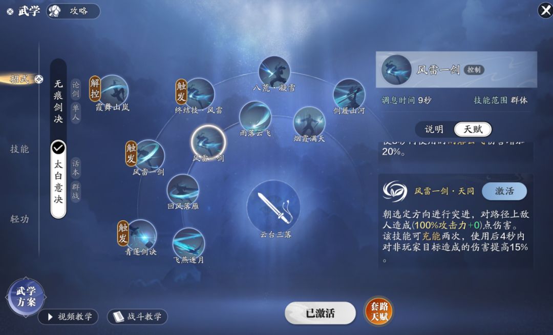三技能风雷一剑使用后可以对非玩家目标伤害提高15%,所以尽量保证其他输出技能在风雷后使用哦