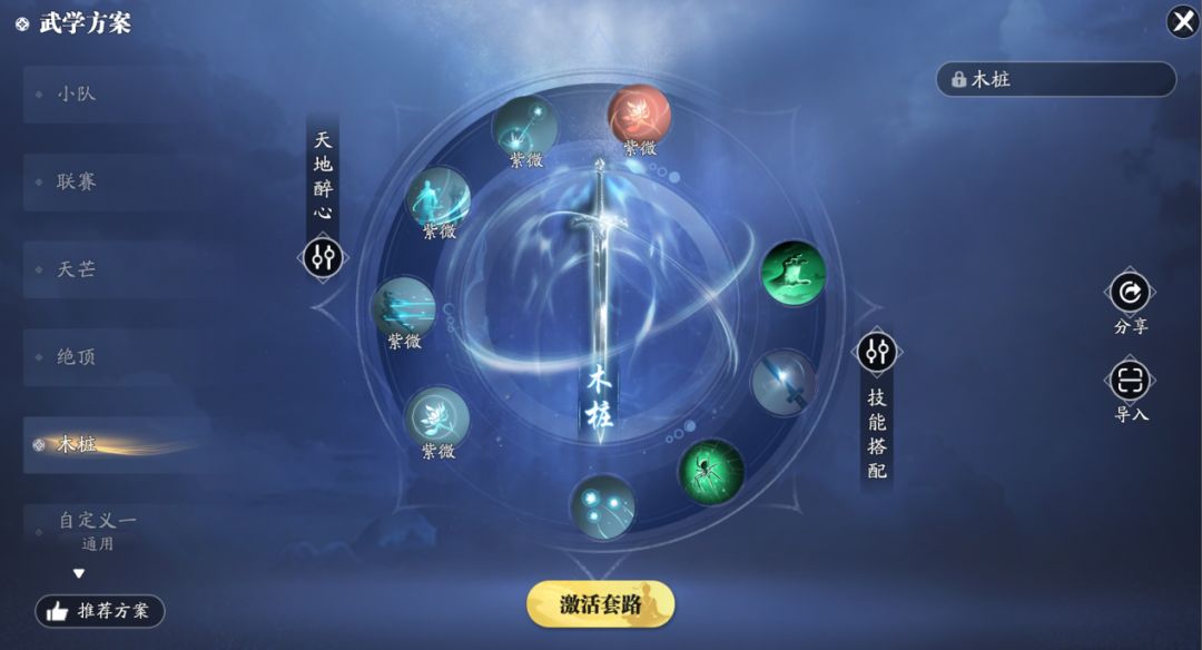 移花由于是奶妈和输出双修职业,所以输出方案只有一套:这里推荐带论剑套路中天赋全部为紫薇绝顶的方案。