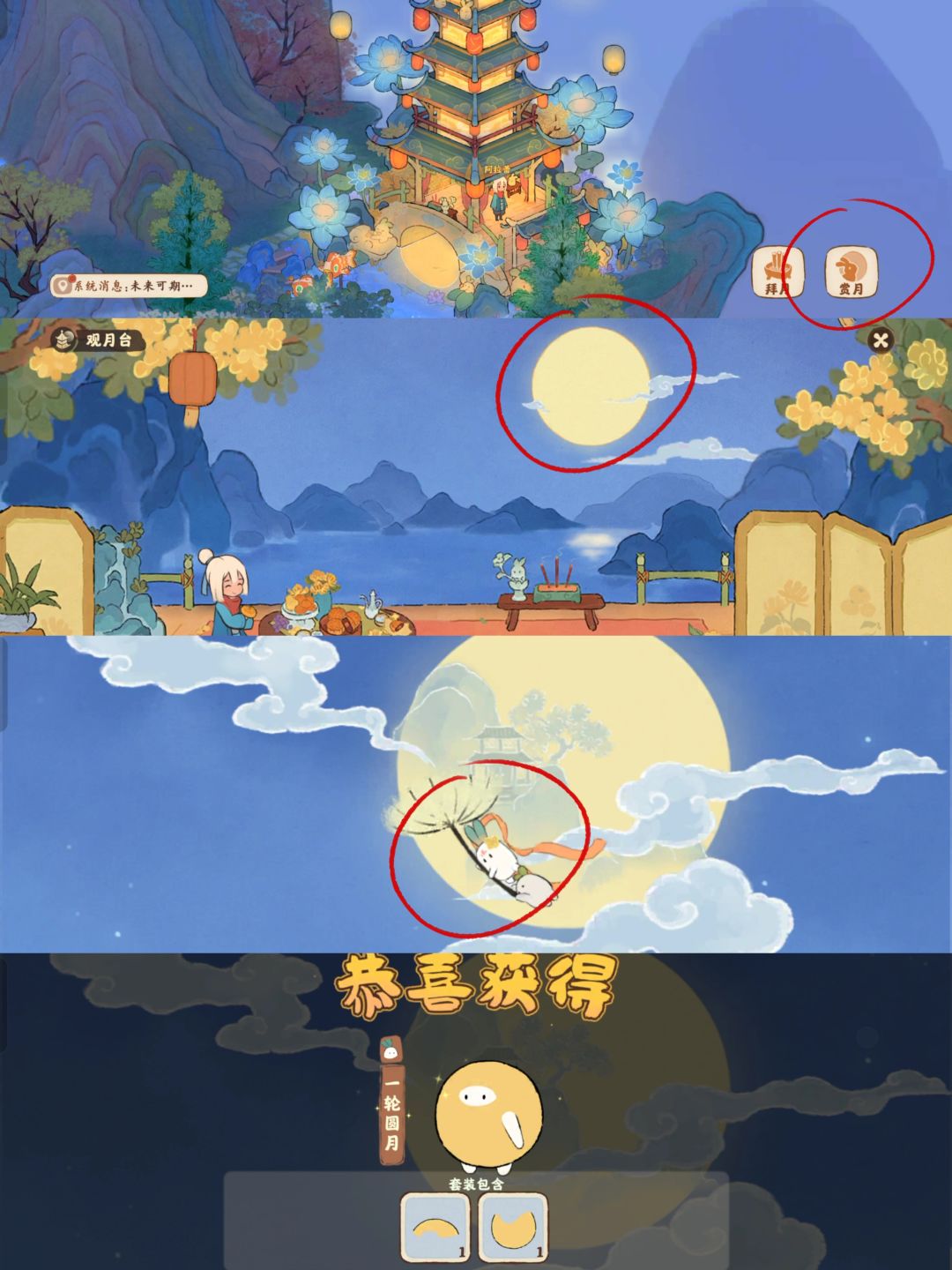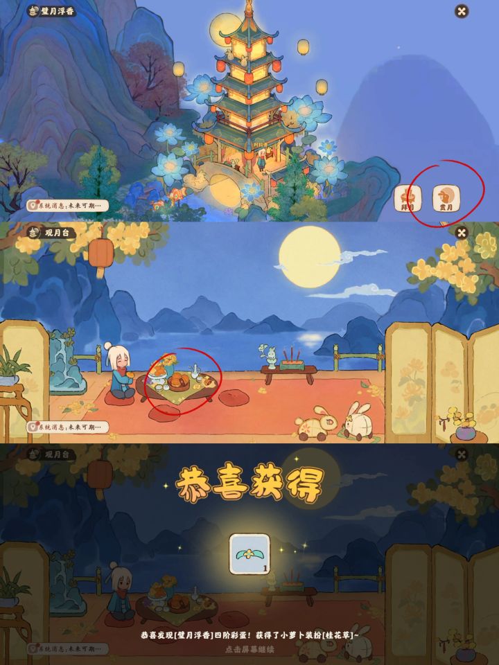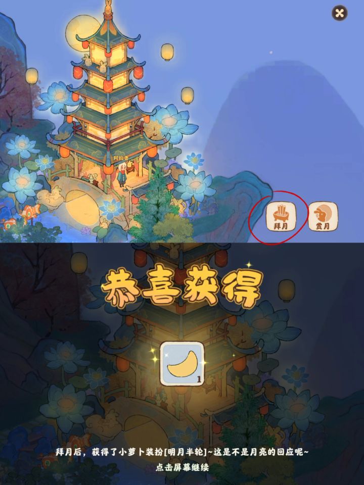 点击建筑—点击赏月—点击月亮—出现两只萝卜