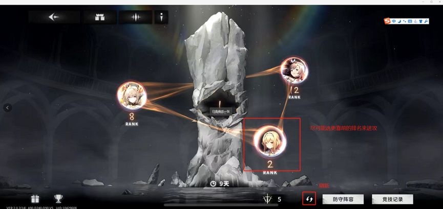 爬塔核心策略: 赛季新开时,玩家都在统一的起跑线(排位误差不超100),利用刷新尽可能选择排名更高的人机(赛季开始排在前面的都是人机),既能避免遇到高战力玩家的防守阵容,也能更快提升排名。此时建议用欧泊购买挑战次数,更高的排名也意味着更多的周奖励,相当于免费购买挑战次数。而当达到前10以后不推荐用欧泊购买挑战次数,除非你和前方玩家有旧仇。