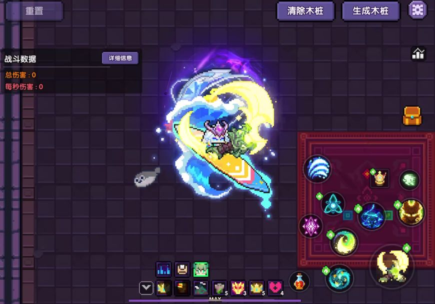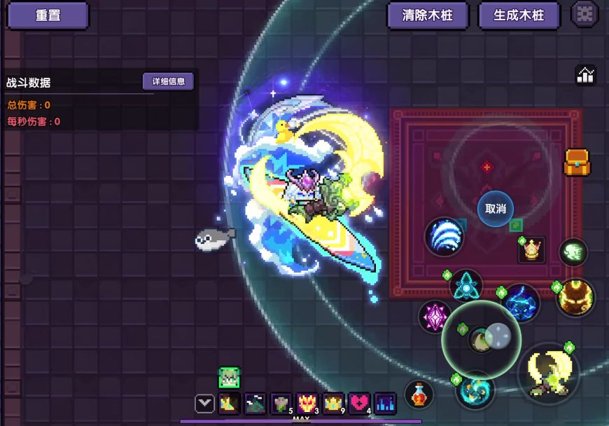 实战中紫色技能并不需要亮了就点,在看到图中没有月阵但是大招cd好了时手动放一个即可。