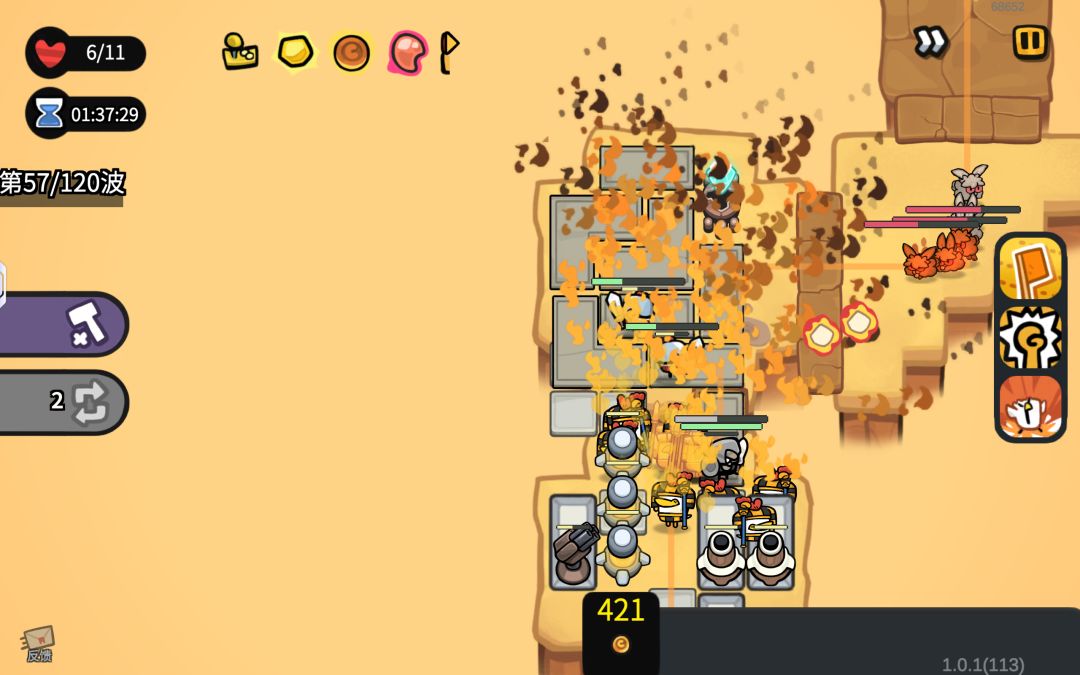 在5波波次结算的时候瞬间释放自爆会把那部分的兵直接卡没,甚至不会结算给塔,直接从游戏除外了。