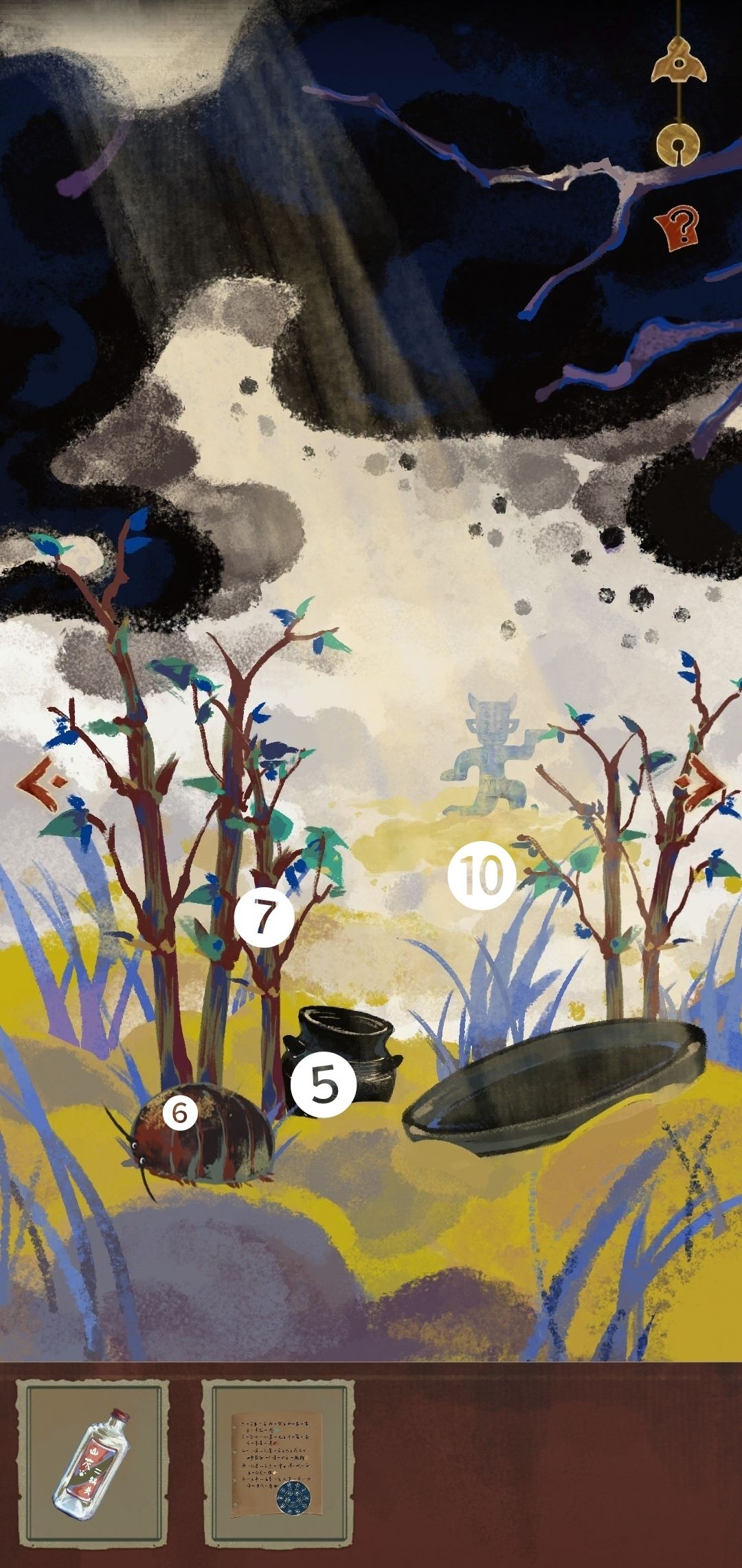 ⑤获得黑陶罐后,拖到⑥上,开始游戏,小游戏捕捉五只土鳖虫,获得一些土鳖虫