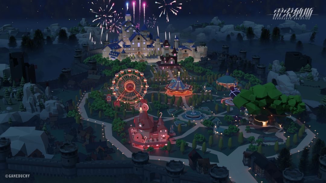 夜幕低垂,游乐城已被万千灯光精心点缀,勾勒出无尽的瑰丽与奇幻……