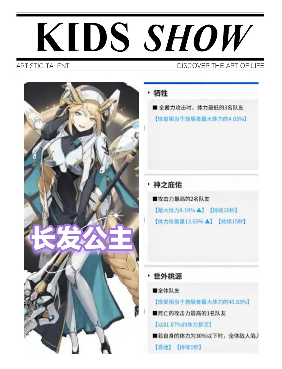 她满蓄力,对1个攻击最高的队友,有暴击加成,并且为他提高蓄力伤害。