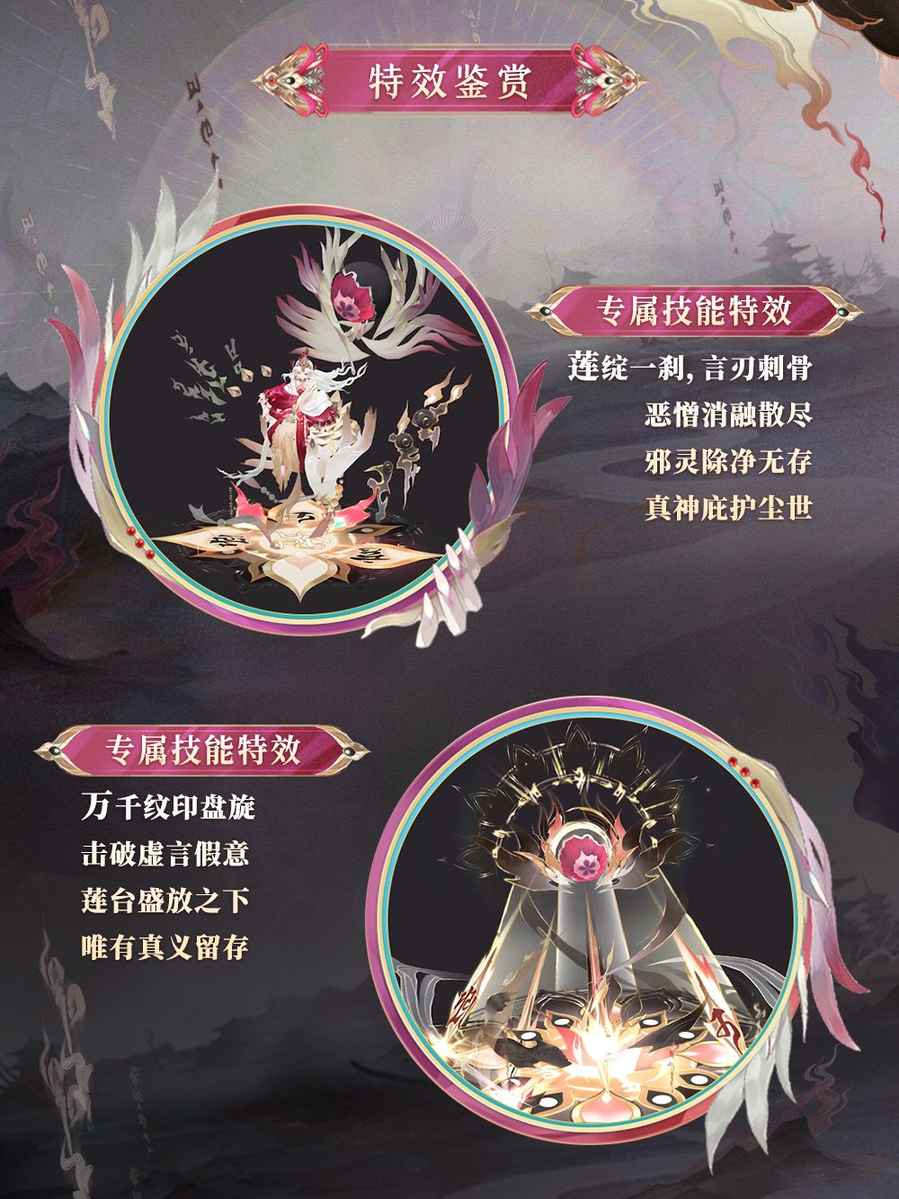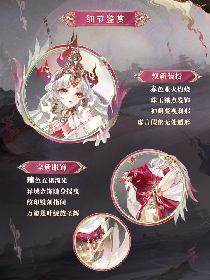 莲花台座无声绽放,瑰丽珠眸似炽烈业火。神明凝聚真言光芒,辉耀尘寰映照万物。