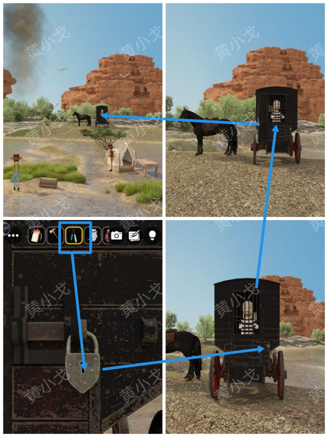 31.点击囚车,用【锥子】撬开锁