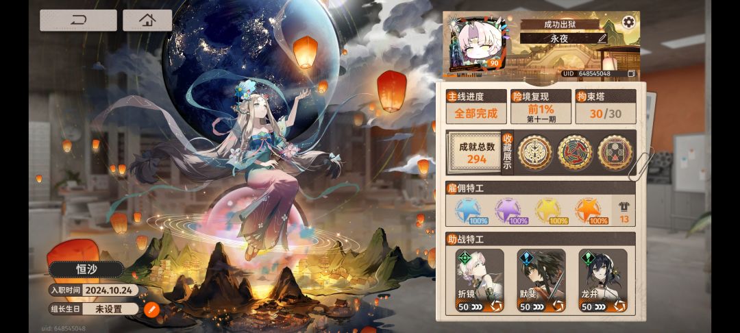 阵容:朝颜、阿莱夫、折镜、龙井,支援:夜来、洞明、沐绵
