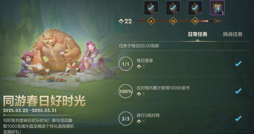 与好友共度峡谷欢乐时光!截止至3月31日,召唤师参与活动即可赢取龙魂水晶*1000及精选个性化道具随机宝箱好礼~