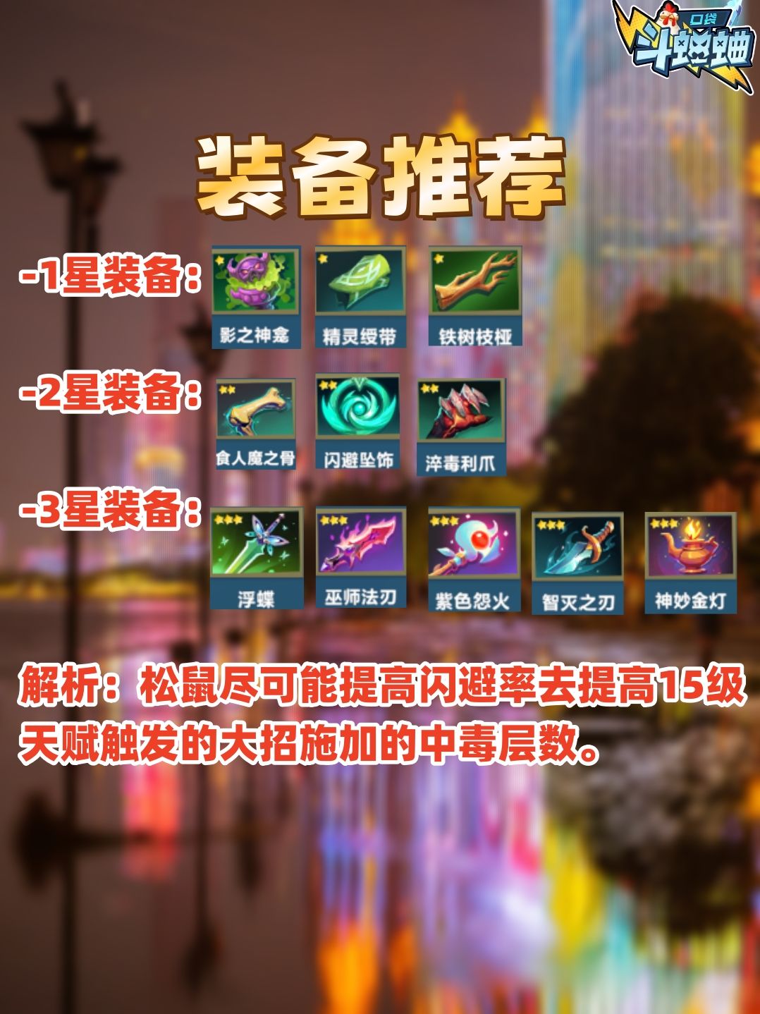 松鼠在这个版本提升了15级天赋的概率,同时可以偷基础闪避,强度可以说在闪避流里属于是佼佼者了