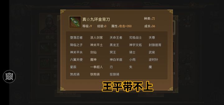 还有你们新道具上架之前连检查测试都没有吗?王平带不上王平套武器,关平不转神将带不上关平套武器。