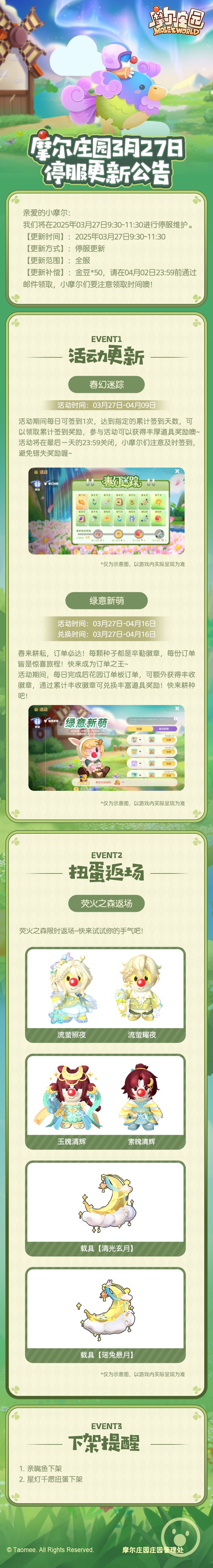 【更新补偿】:金豆*50,请在4月2日23:59前通过邮件领取,小摩尔们要注意领取时间噢!