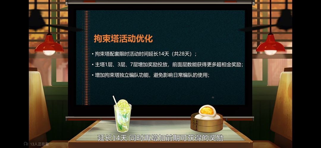 1.爬塔优化。延长限时奖励时间,增加奖励,设置爬塔独立编队。