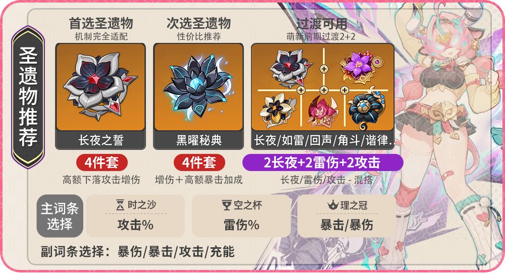 三、配装详解(圣遗物套装、词条推荐、标准及天赋加点)