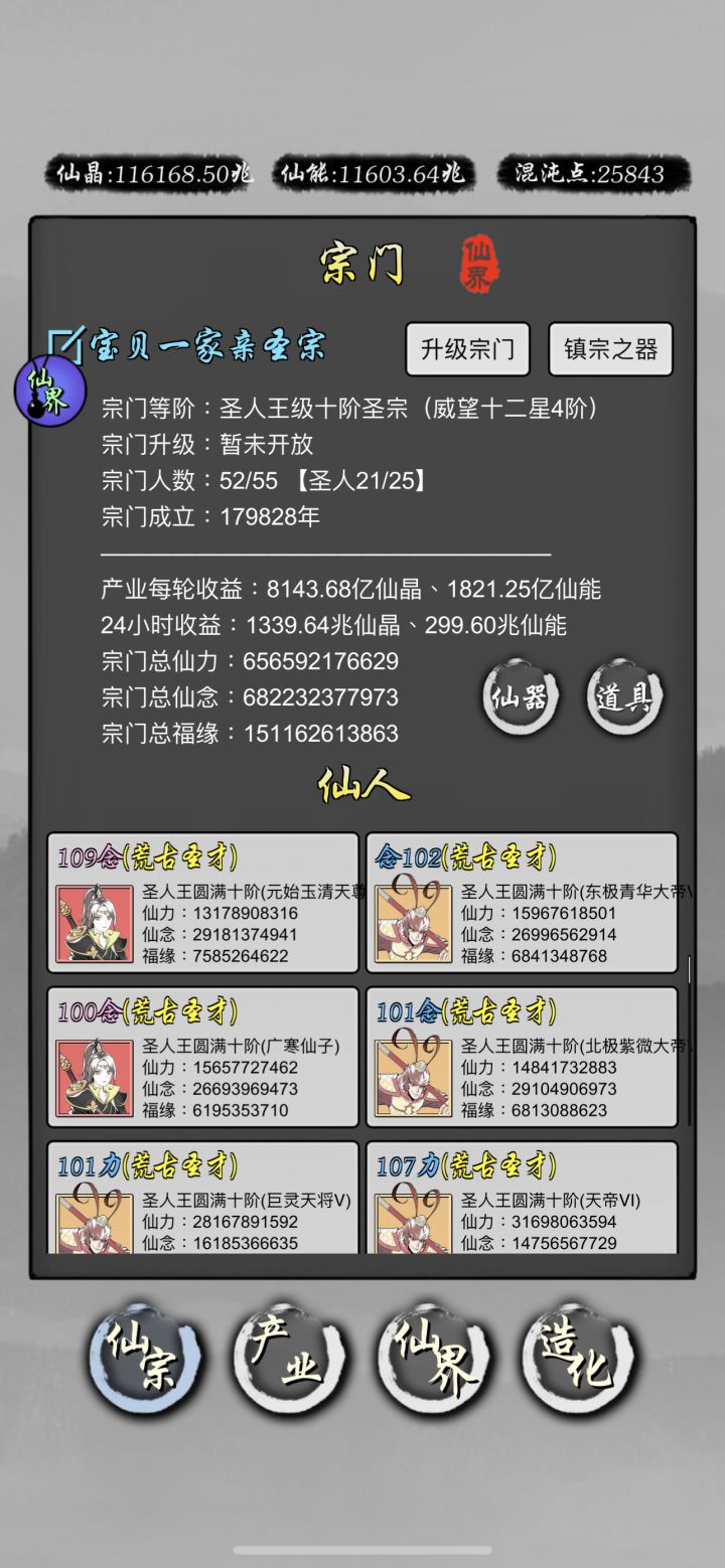 当初随便下载、之后玩着玩着就每天看看广告就算了、然后有段时间都没有玩、再后来无聊又咸鱼上来看看广告、完全没有追求、没有看攻略、慢慢自己玩上来的、到现在都是自己探索、不知道什么仙器是尽头、反正继续每天慢慢看看广告慢慢玩吧、