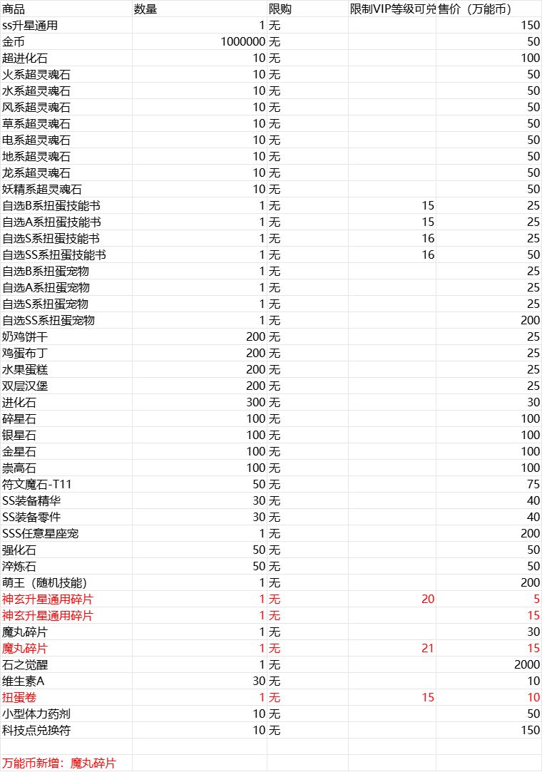 3. 调整魔丸碎片使用万能币兑换的数额(增加VIP兑换)