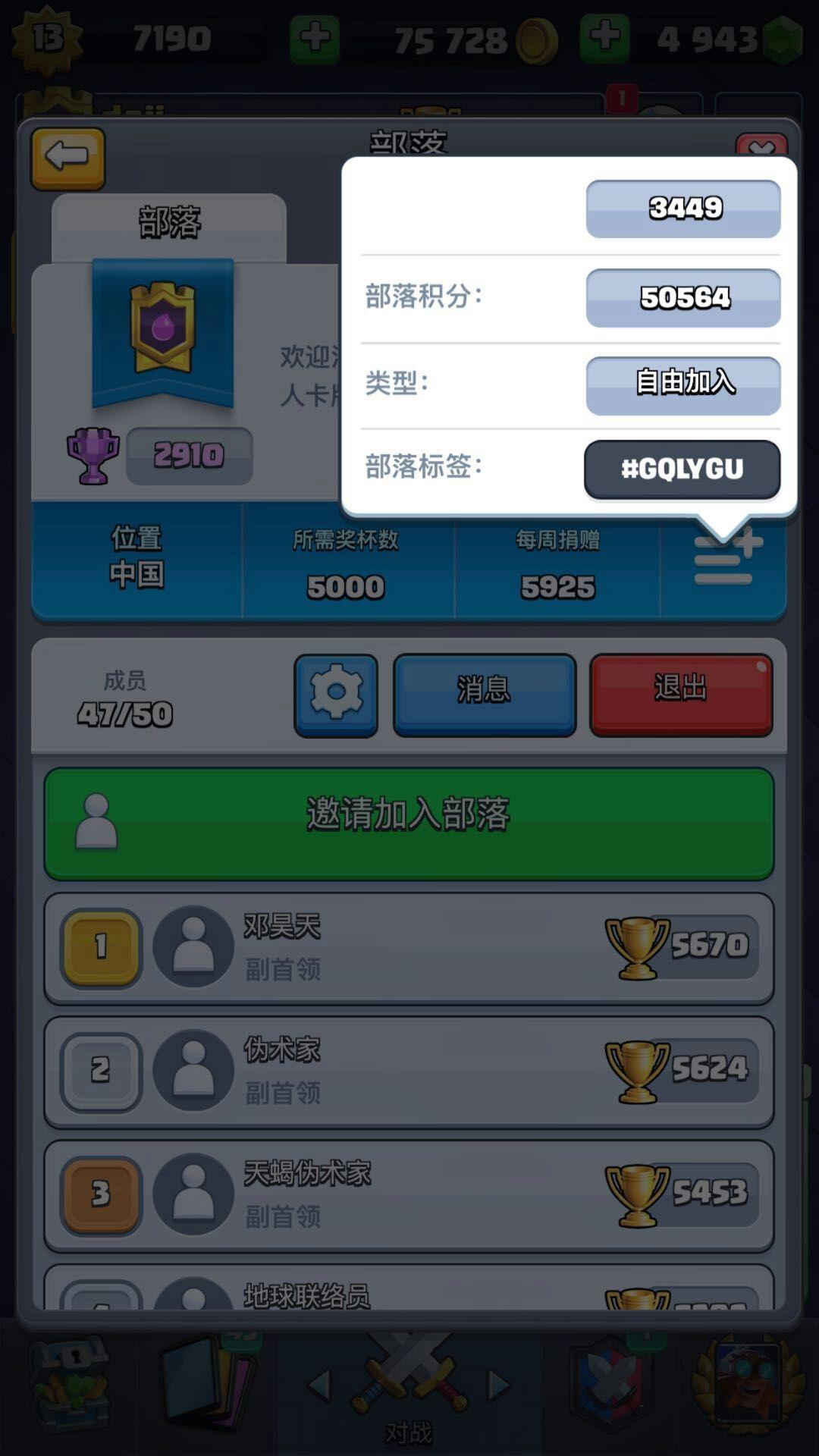 招部落战活跃玩家,目前30多人活跃,随便来几个每周稳稳的拿第一。