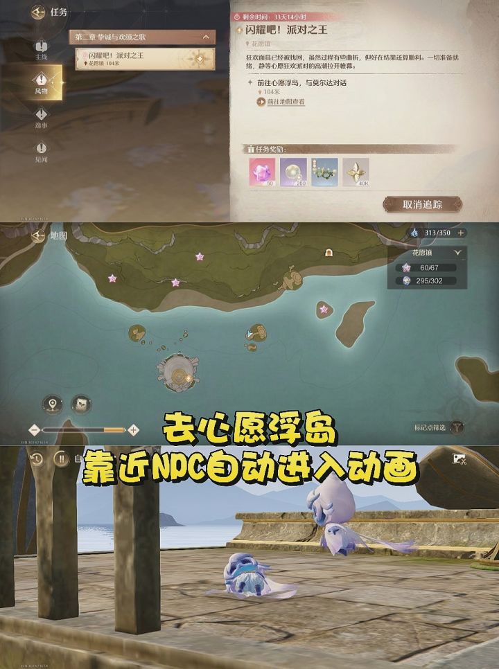 p2∶完成任务【厄运面具休想逃】后开启,在浮岛靠近NPC进入动画