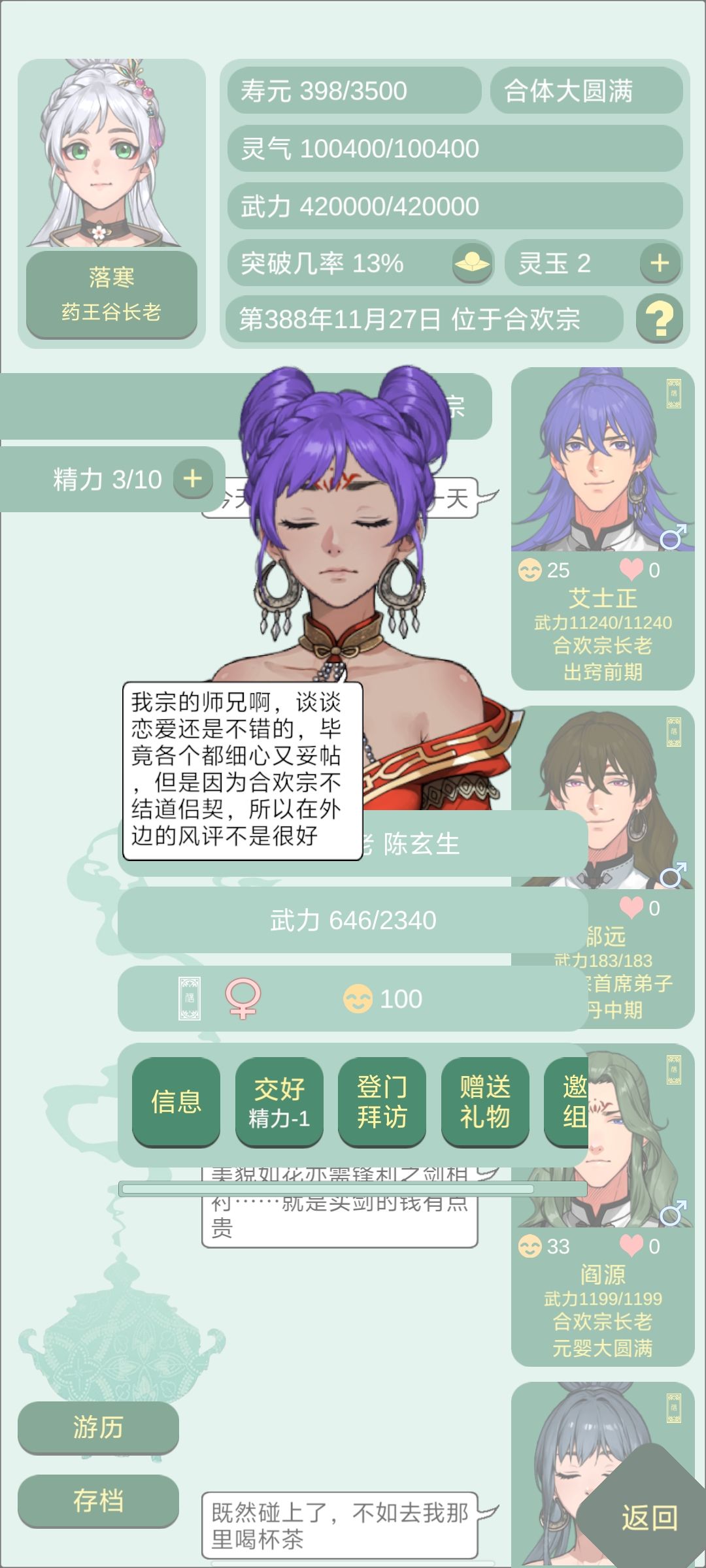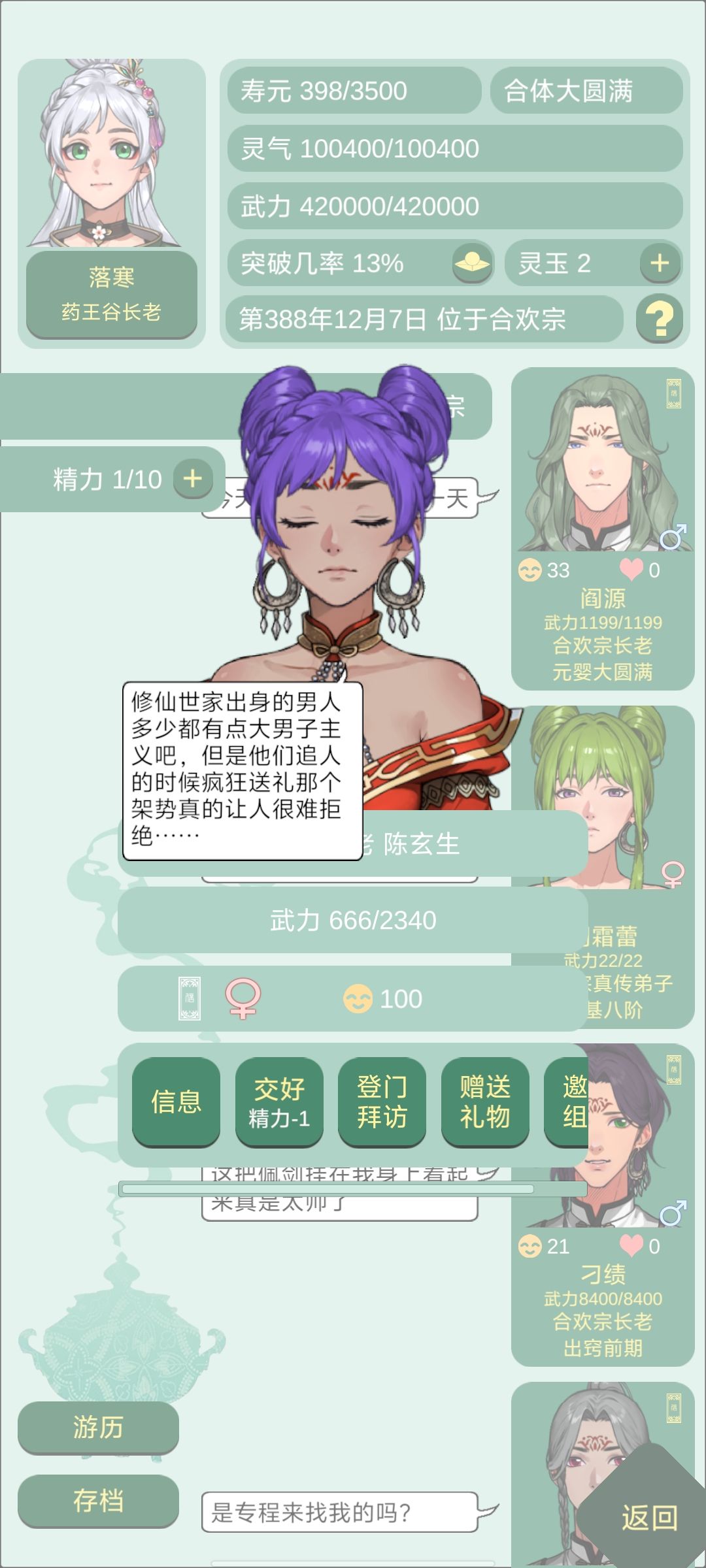 合欢宗的小姐妹也很有趣,交好聊天我喜欢。最后附一张合欢宗男修聊天语录(只能说玩的挺花,不愧是合欢宗)