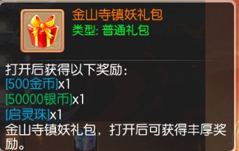 【佛塔镇妖】奖励丰富,其中通关小怪关卡可以获得金山寺镇妖礼包,通关boss关卡可以获得金山寺助缘礼包,通关每一层更可以获得金山寺护塔礼包!