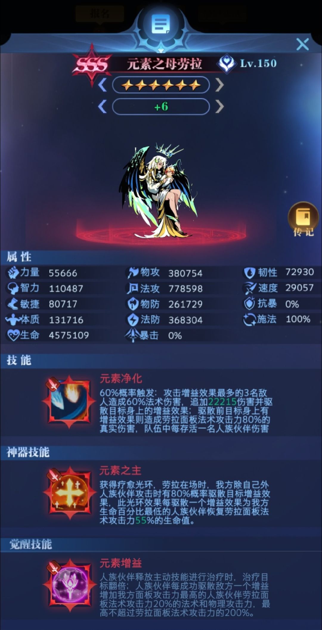 在官方预告里,劳拉的主动技能为攻击物理免伤最高的三个,正式上线后变成了攻击增益最多的三个,看样子还是想针对一下法队。神器技能就是基德pro版本,增加了一些概率,还有回血。