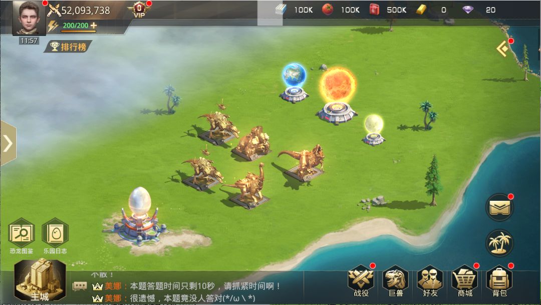 ② 巨兽乐园内可放置主城装饰,属性生效与主城相同,可孵化恐龙蛋、限定蛋,孵化后的生物均可在巨兽乐园中展示
