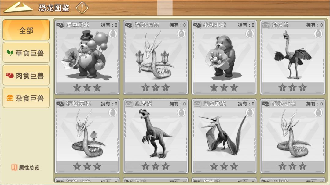 ③ 新增恐龙图鉴,孵化的所有生物在图鉴中展示,首次孵化即可点亮图鉴,激活图鉴加成