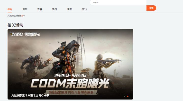 看来有挺多人不知道鱼台新出的白嫖活动该怎么参加,出个教程给大伙看看,首先直接在某鱼搜codm就能找到活动界面,进去之后看播、发弹幕还有打几把手游多会加曙光值,曙光值能拿来换皮肤,就这样