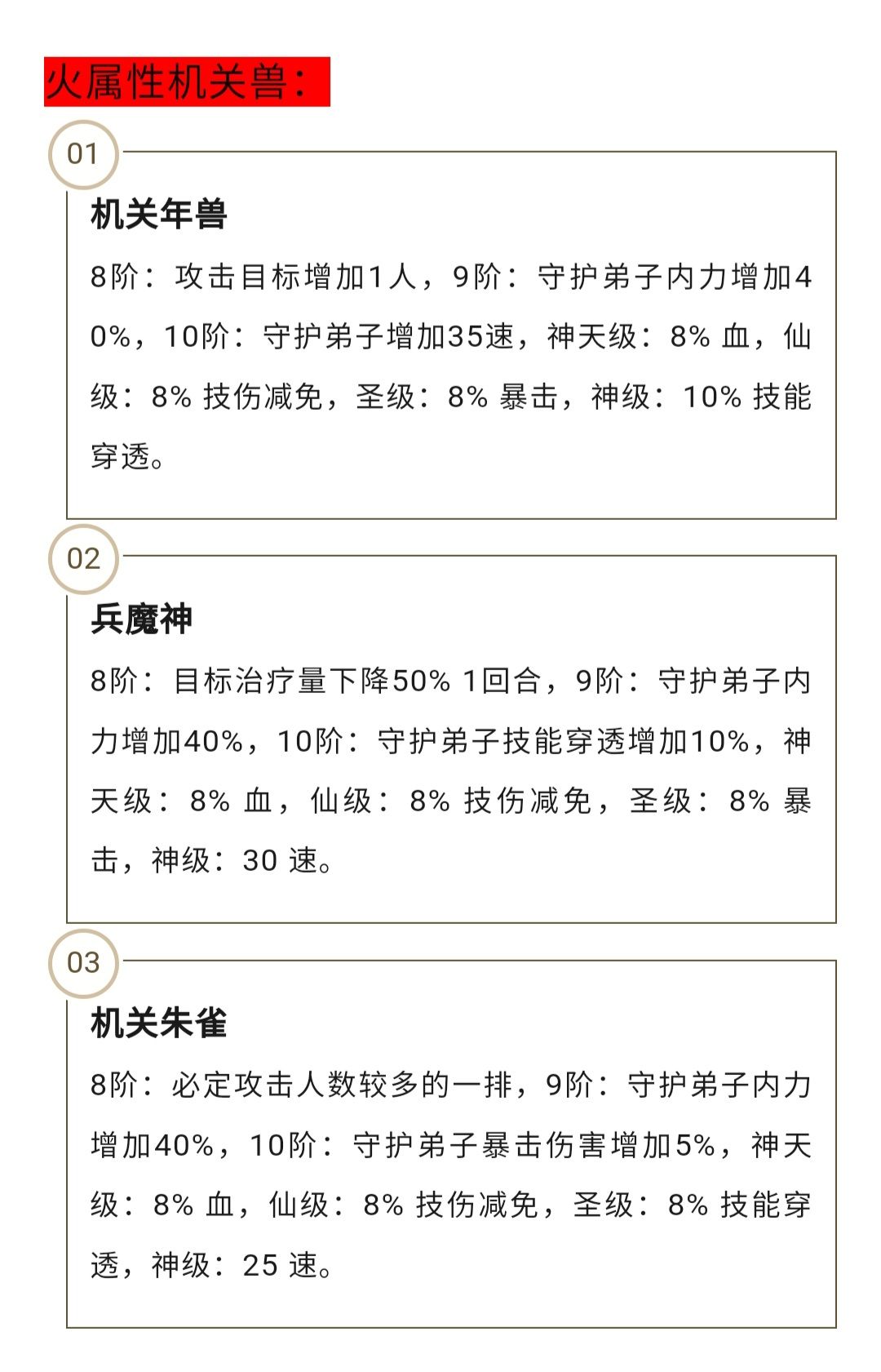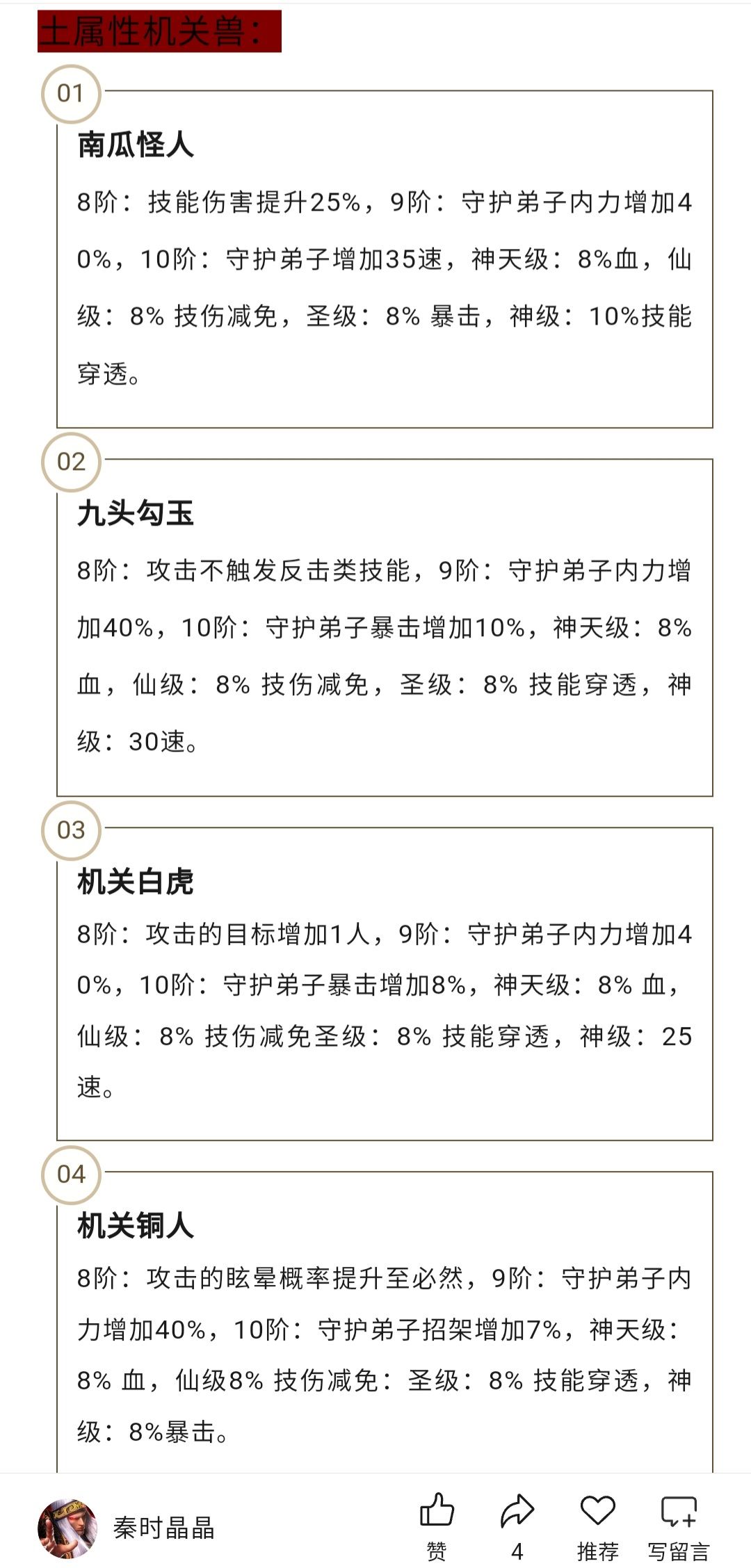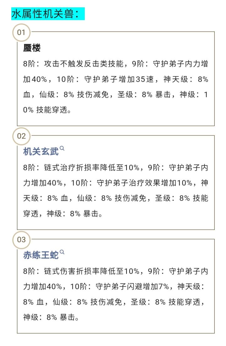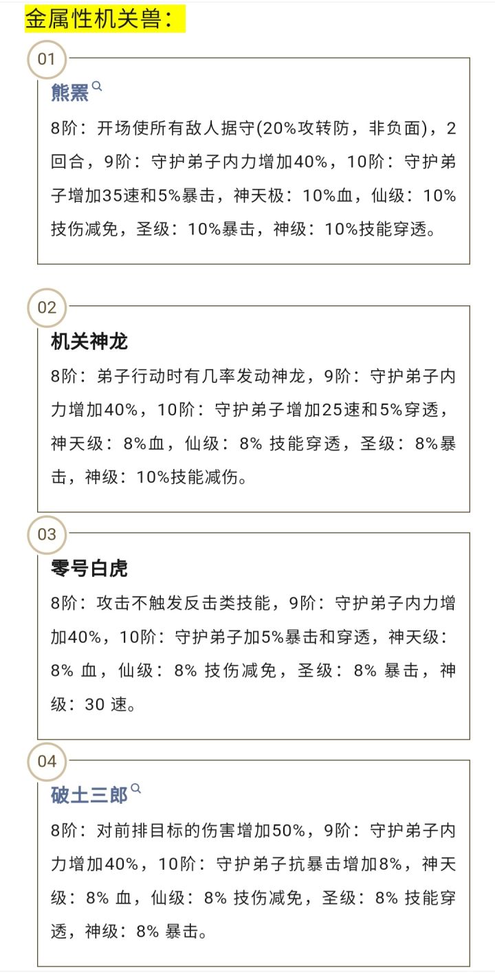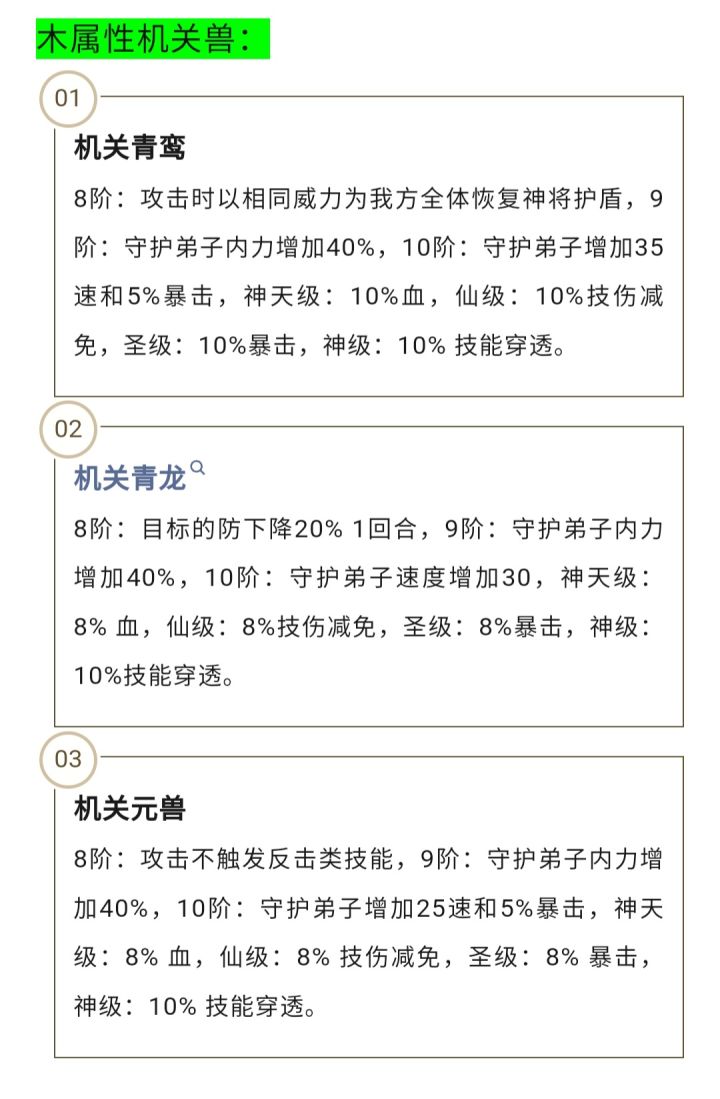 秦时明月卡牌机关兽属性
