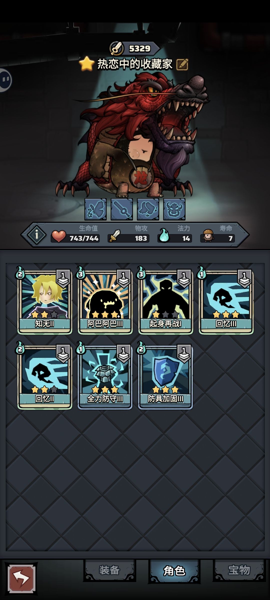 卡牌组成(必须的):起身再战,回忆*2,阿巴阿巴,知无