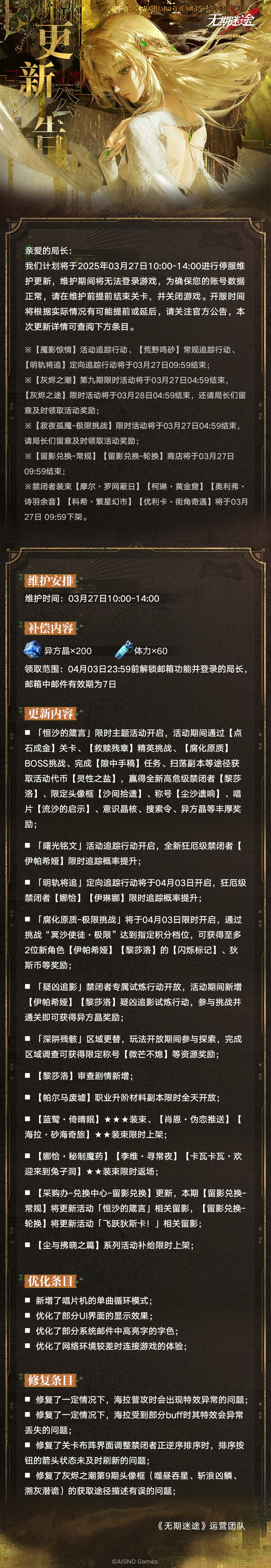 【公告】丨03月27日停服维护更新公告