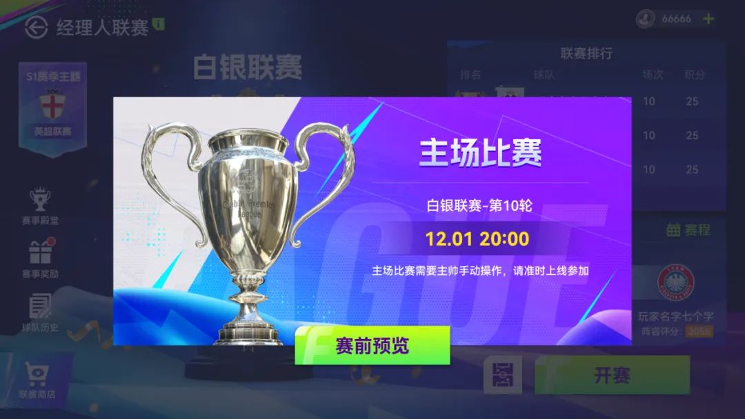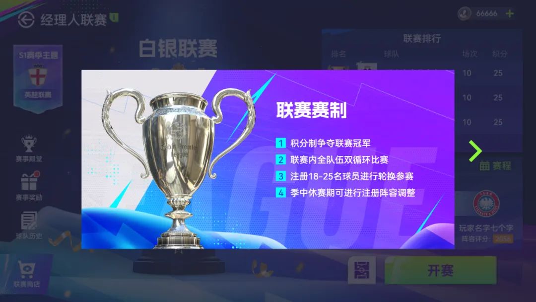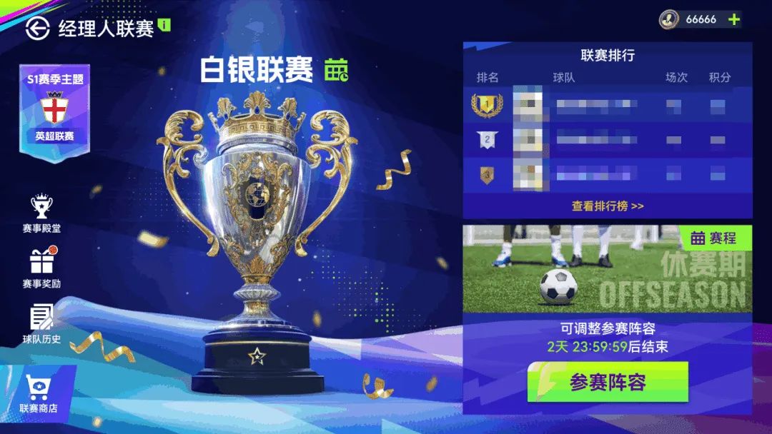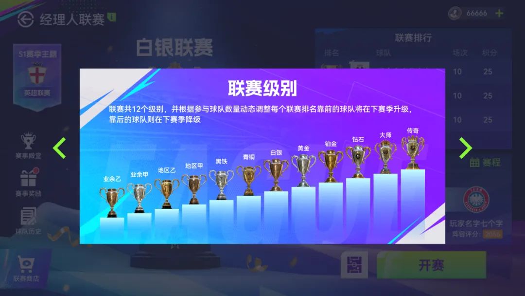 排名奖励:大量合同欧元以及联赛币,赛季结束后根据排名领取