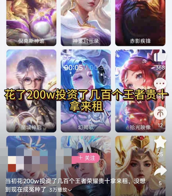 花200W投资王者荣耀贵十皮肤租号卖没人买😂