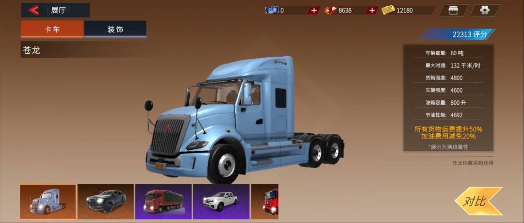 1、苍龙车型全面优化,起始速度、载重、结构等属性加强,车辆评分大幅提升,具体参数调整详见游戏内:
