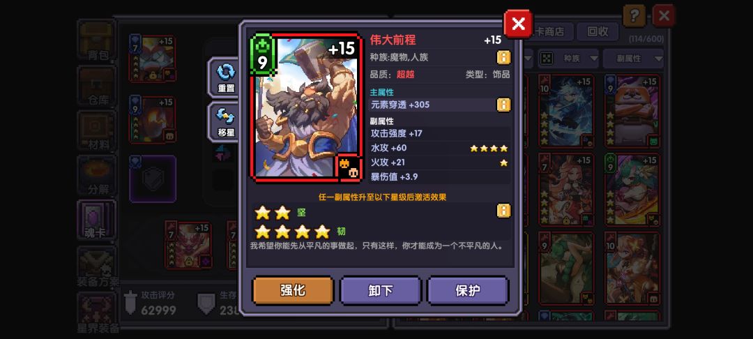 大佬们萌新刚玩一个月左右,有没有大佬教一下怎么调魂卡呀?我现在在考虑要不要把鎏金蛇影重新洗?西成爆伤主属性的,还是说现在的流金蛇影以后等移星卡卡把它移成爆伤?