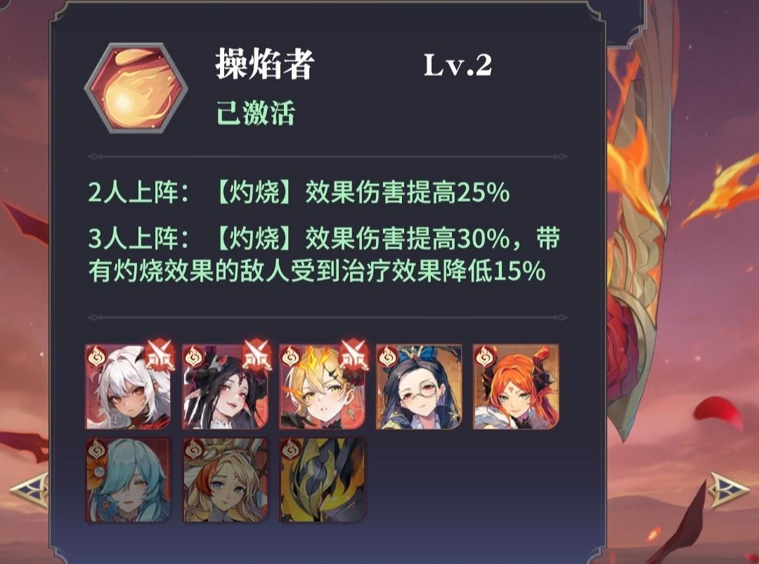 被动技能熔焱蔷薇,能确保只要希尔在场上,即可提升全队所有成员造成的灼烧伤害,具体增幅以希尔的攻击值为基数计算。