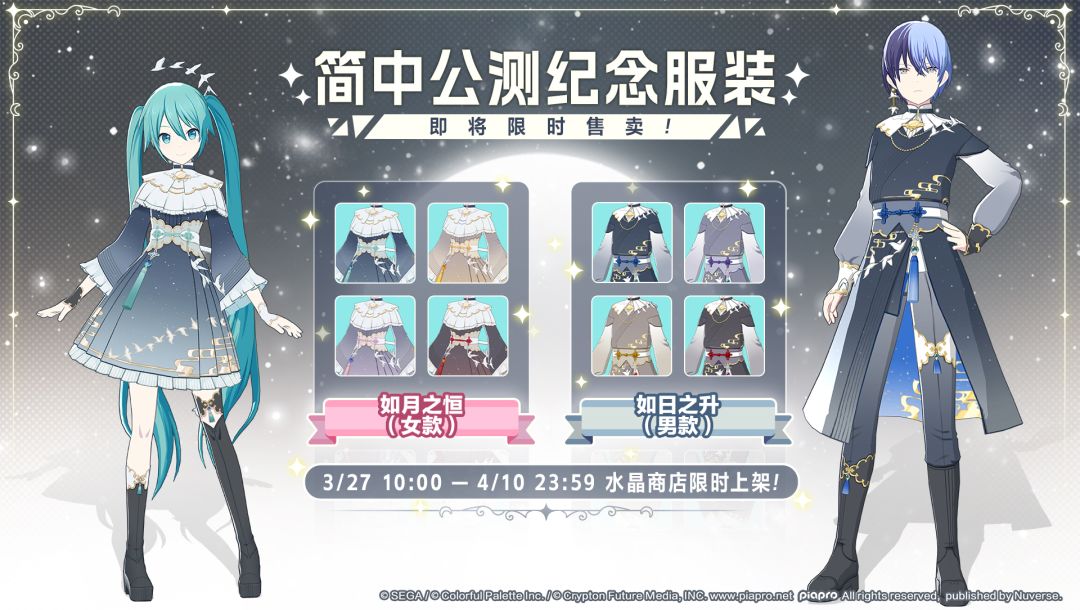 服装「如月之恒(女款)」、「如日之升(男款)」将进行售卖,请把握这次机会。