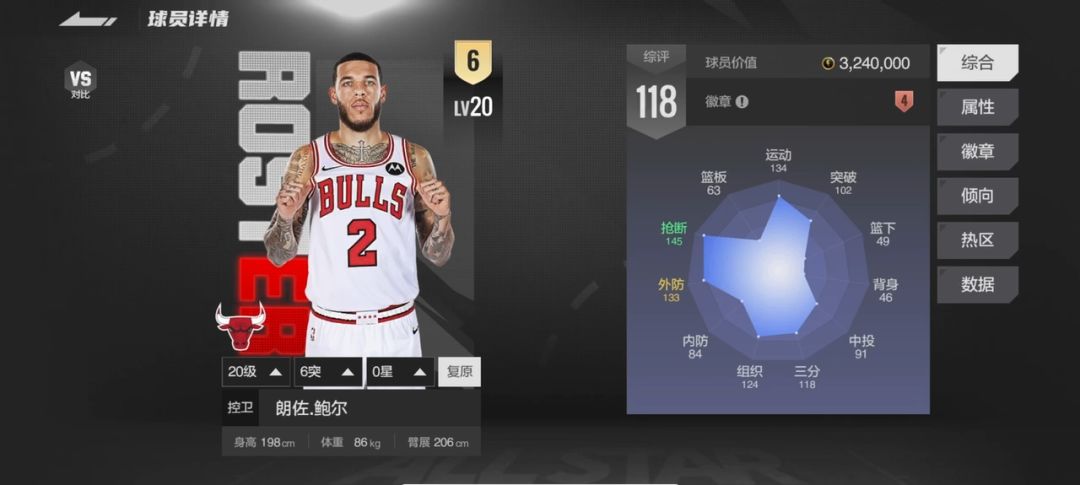 首当其冲,球哥,朗佐·鲍尔,目前单卡10.8w,可以用来打3个模式的1号位。模型不错,控球稳如狗,投篮和突破虽然不够突出,但是也不能轻易放空,最关键的是他优秀的外防,香甜可口!