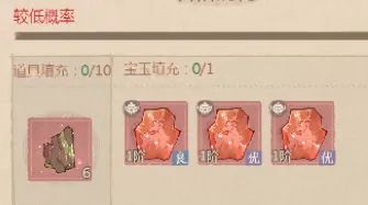 小编试过用七个材料+一个宝玉仍然没有晋阶成功过,得不偿失。要赌的话建议只填充一个宝玉不选择材料进行升阶,运气好一两次就成功了。这个方式只适用于红玉储备较多的情况下,如果宝玉不充足还是建议收集材料保底升阶。