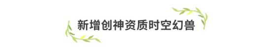 1、新增创神资质时空幻兽:霓渊神螭,在战斗中通过时空之临同时召唤出时空幻兽霓渊神螭助战,霓渊神螭会随着等级出现外貌变化(创神资质幻兽有6个形态)