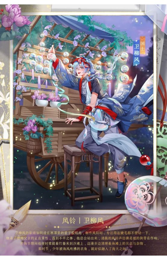 1、3月28日00:00至4月3日23:59期间,群贤毕至活动限时开启!参与活动,翻牌迎贤,即可有机会获得风铃血统国士侍从“卫柳风”及其信物“麻缠腕”、风铃血统国士侍从“解花铃”及其信物“荧星链”