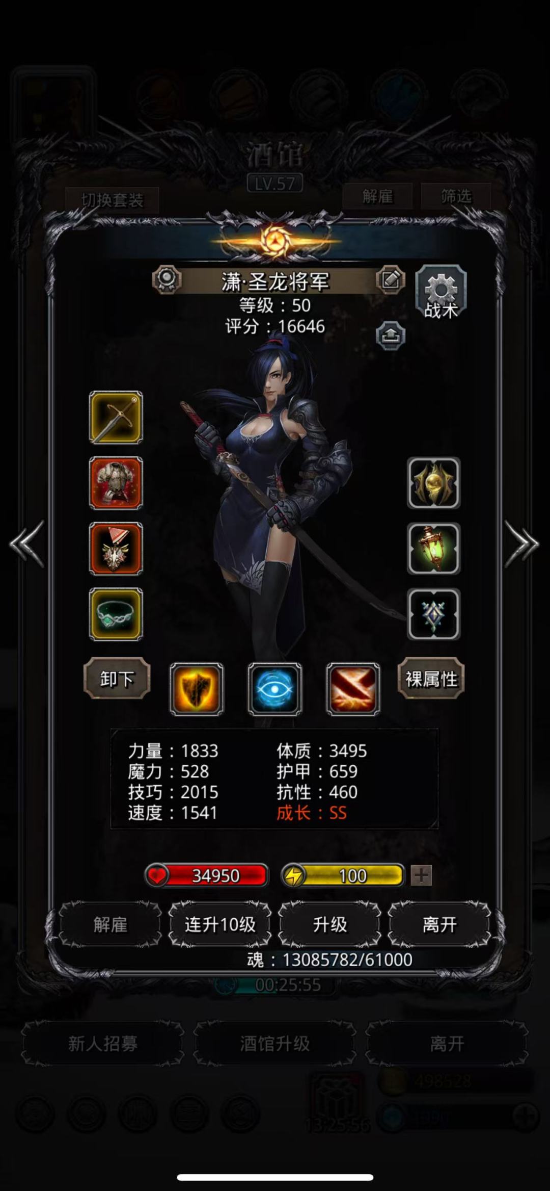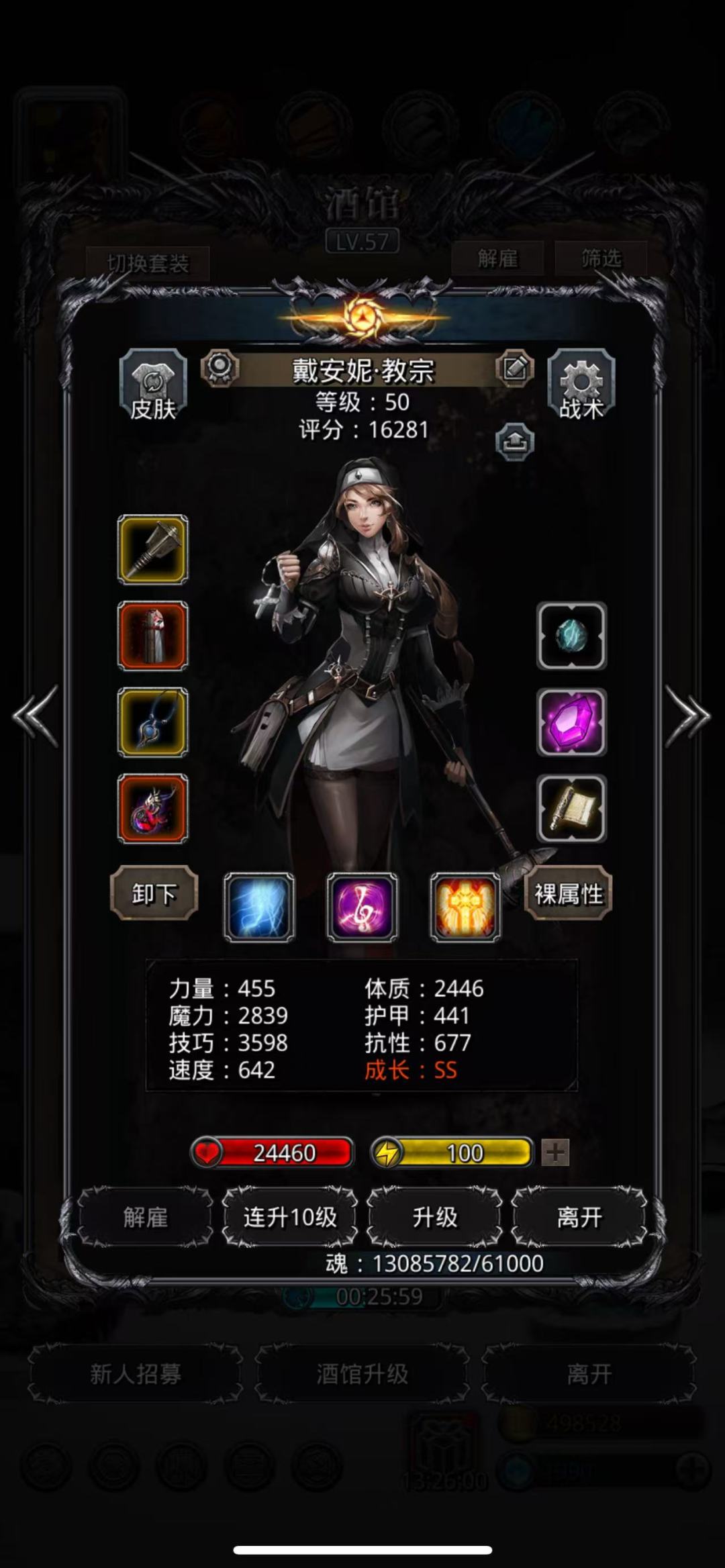 独裁圣龙法最考验的就是奶量了,所以传法很有必要,用献祭头奶量更足,基本不会翻车(传法血量最少时候只有700多血)。圣龙需要带先发,3万多血足够了,尽量增加技巧,所以战利品我换了个纯技巧的,嘲讽反伤不断,偶尔吸血几次就能站得住(一次吸血没有就很容易翻车)。
