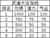 武道大赛胜利增加潜力,排名增加功绩、潜力、气运。