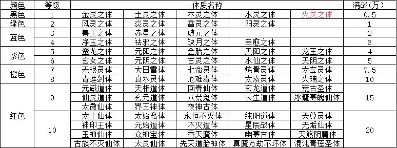 (预计1-8等只有五个体质,9/10应该不上限,欢补充)
