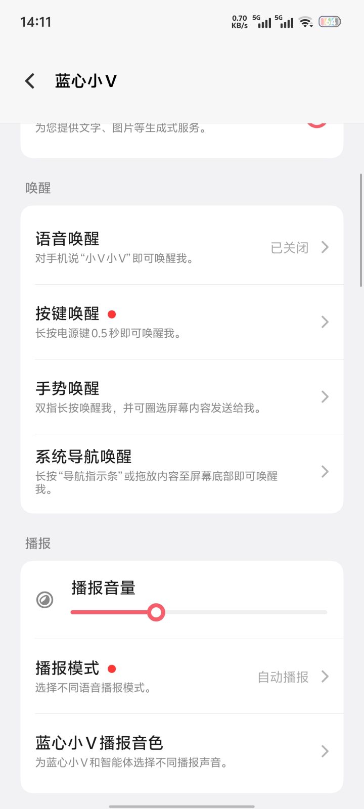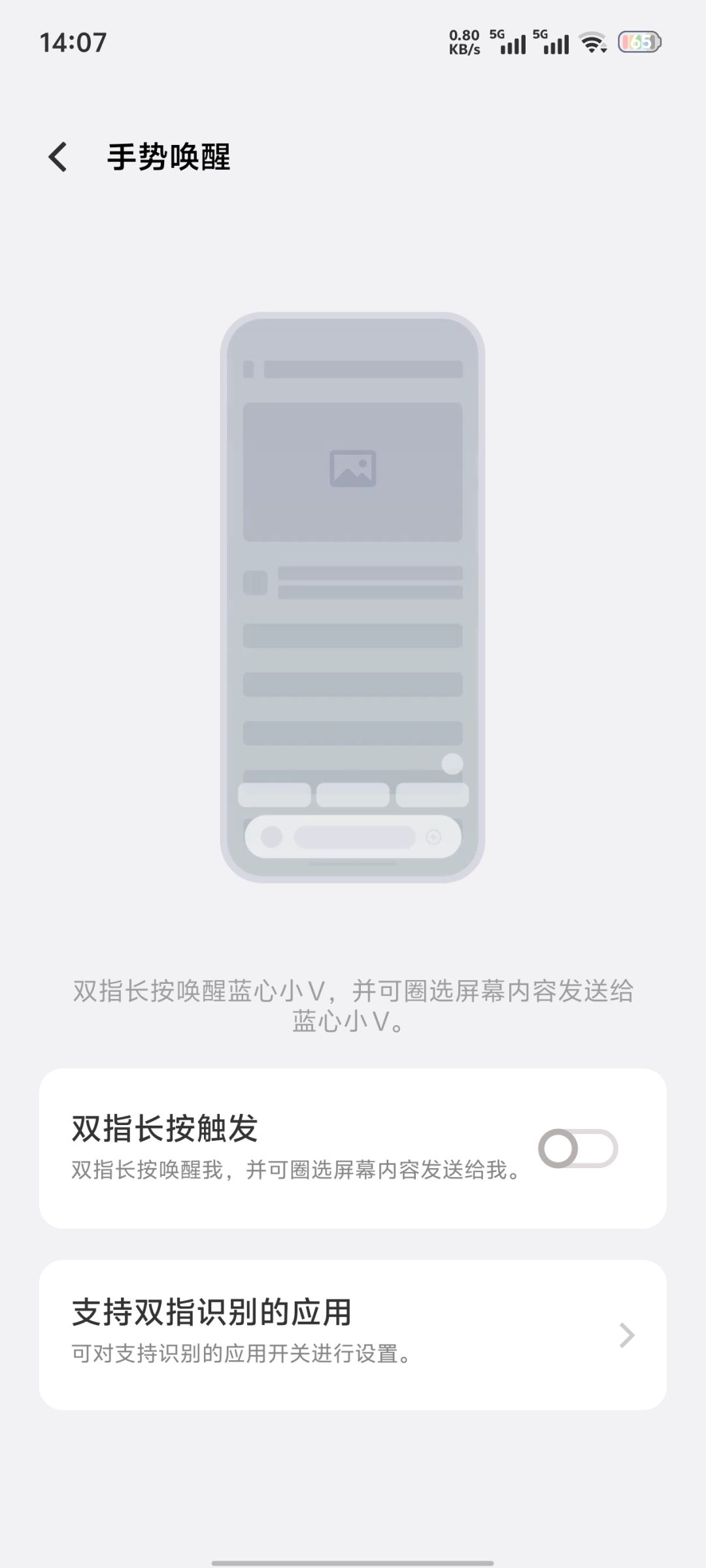 设置-蓝心智能-蓝心小V-手势唤醒-关闭双指长按触发