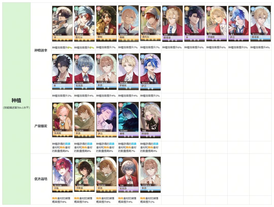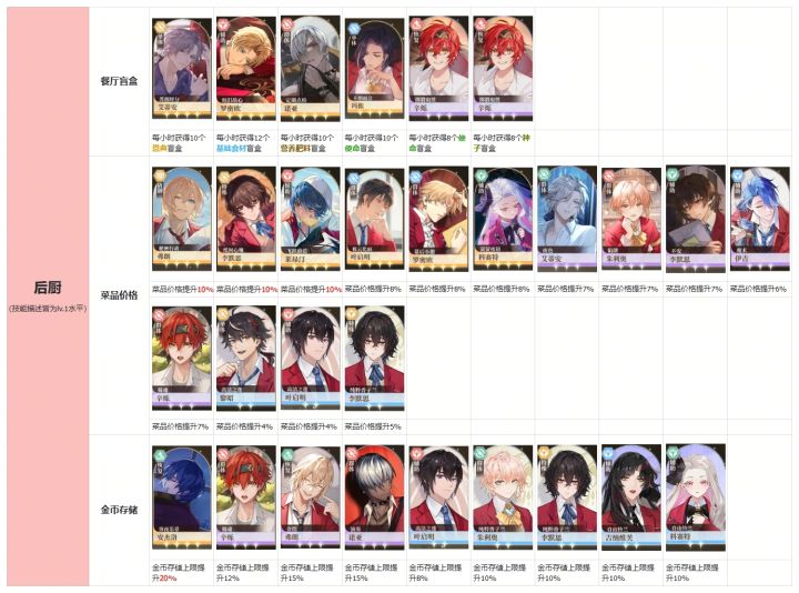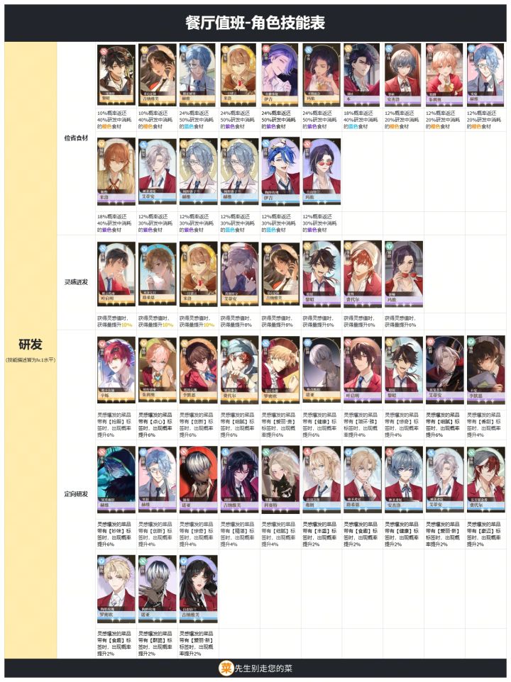 【餐桌攻略】餐厅值班-角色技能表