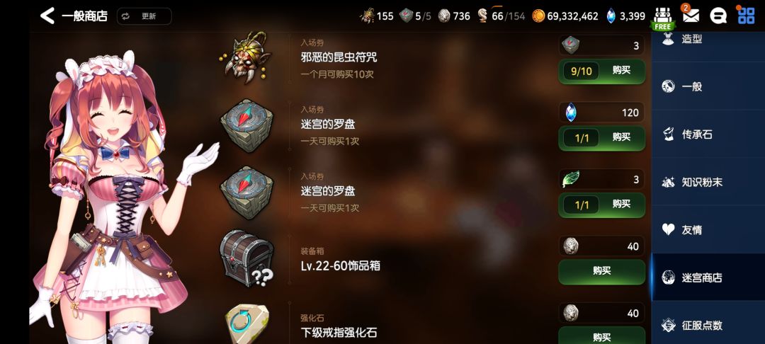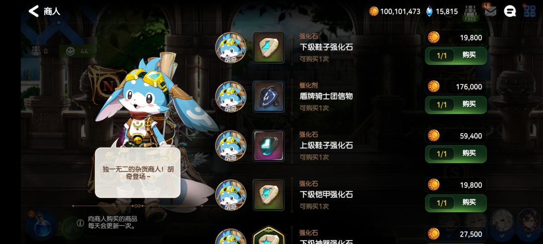 绿灯每周萝卜必买,潜能开发碎片缺的时候再买,可以留一两个备用,强化石和炼制石有需要再买,优先保证能买萝卜