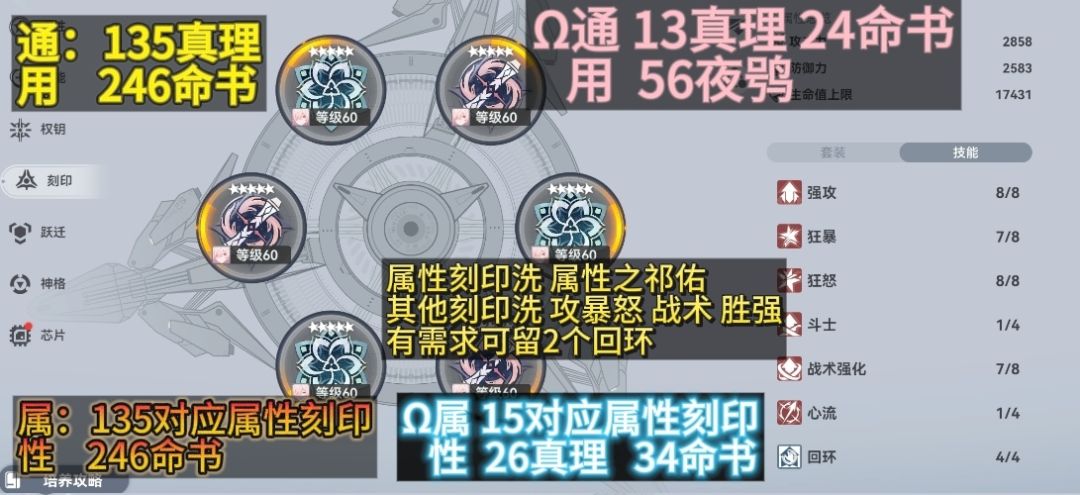 通用刻印:135真理246命书 → 赋能8攻8暴8怒8战术几胜强,不要x之祁佑